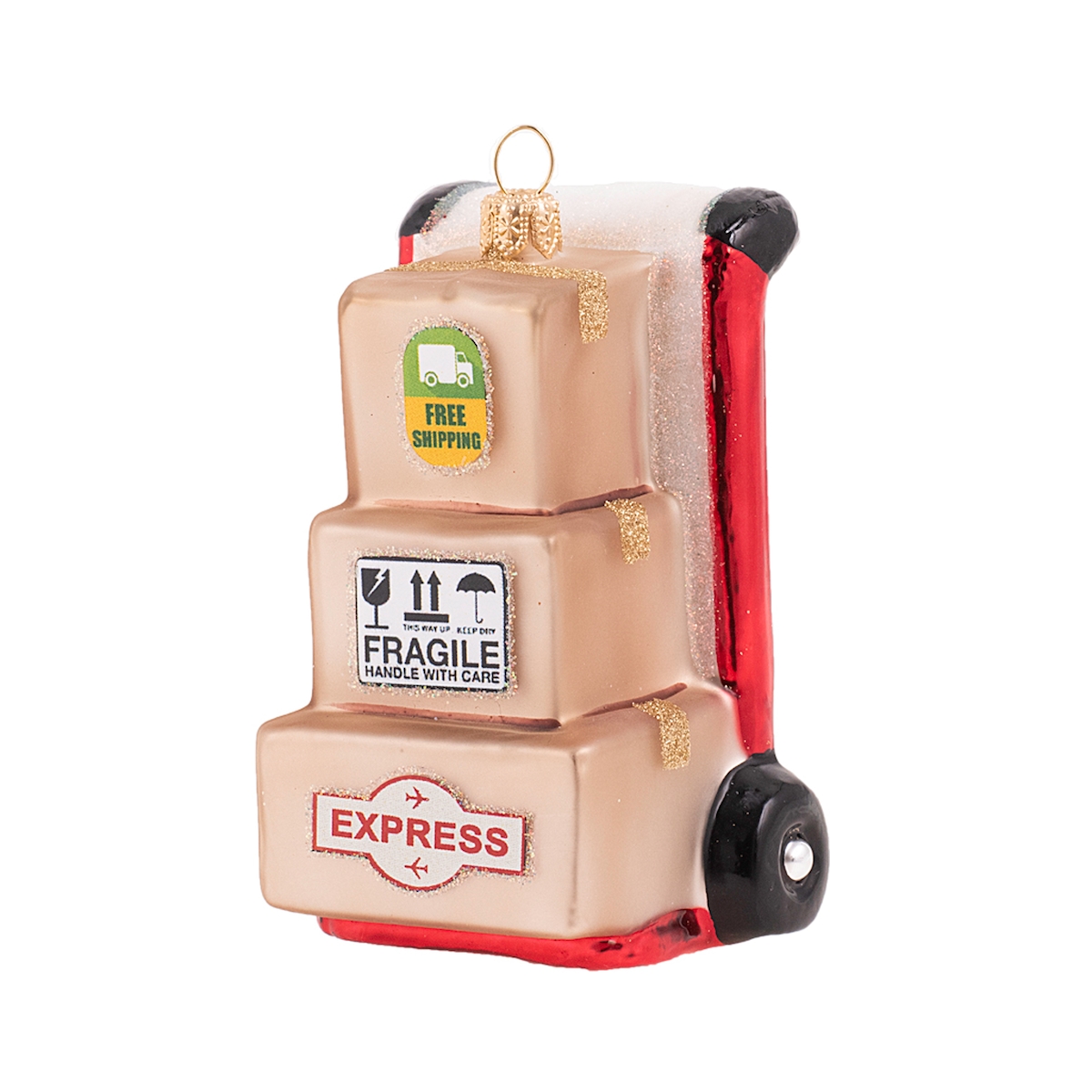 Christbaumschmuck Glas 9cm Sackkarre Figur Mundgeblasen & Handbemalt Weihnachtsbaum Anhänger Weihnachten Weihnachtsbaumschmuck Arbeit Beruf Beige Rot