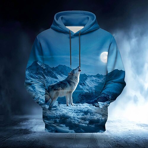 Per uomo MOON Lupo Felpa con Cappuccio Felpa 3D Fantasia Girocollo Abbigliamento casual alla moda Club Regalo Blu chiaro Blu 1 Blu 3# Blu 2# Coulisse Autunno Inverno progettista S M L XL XXL XXXL