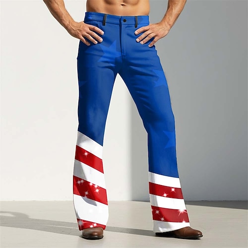 Per uomo Bandiera degli Stati Uniti Patriottico 250° anniversario degli Stati Uniti Pantaloni Pantaloni da discoteca Pantaloni a zampa d'elefante anni '60 e '70 Misura del girovita medio Vintage Retrò