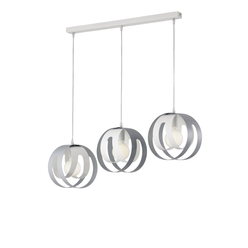 BeLight Tobias Pendelleuchte Weiß/Grau, rechteckige Rosette, 3x E27, L86x26 cm - BL302-BIN3-BG