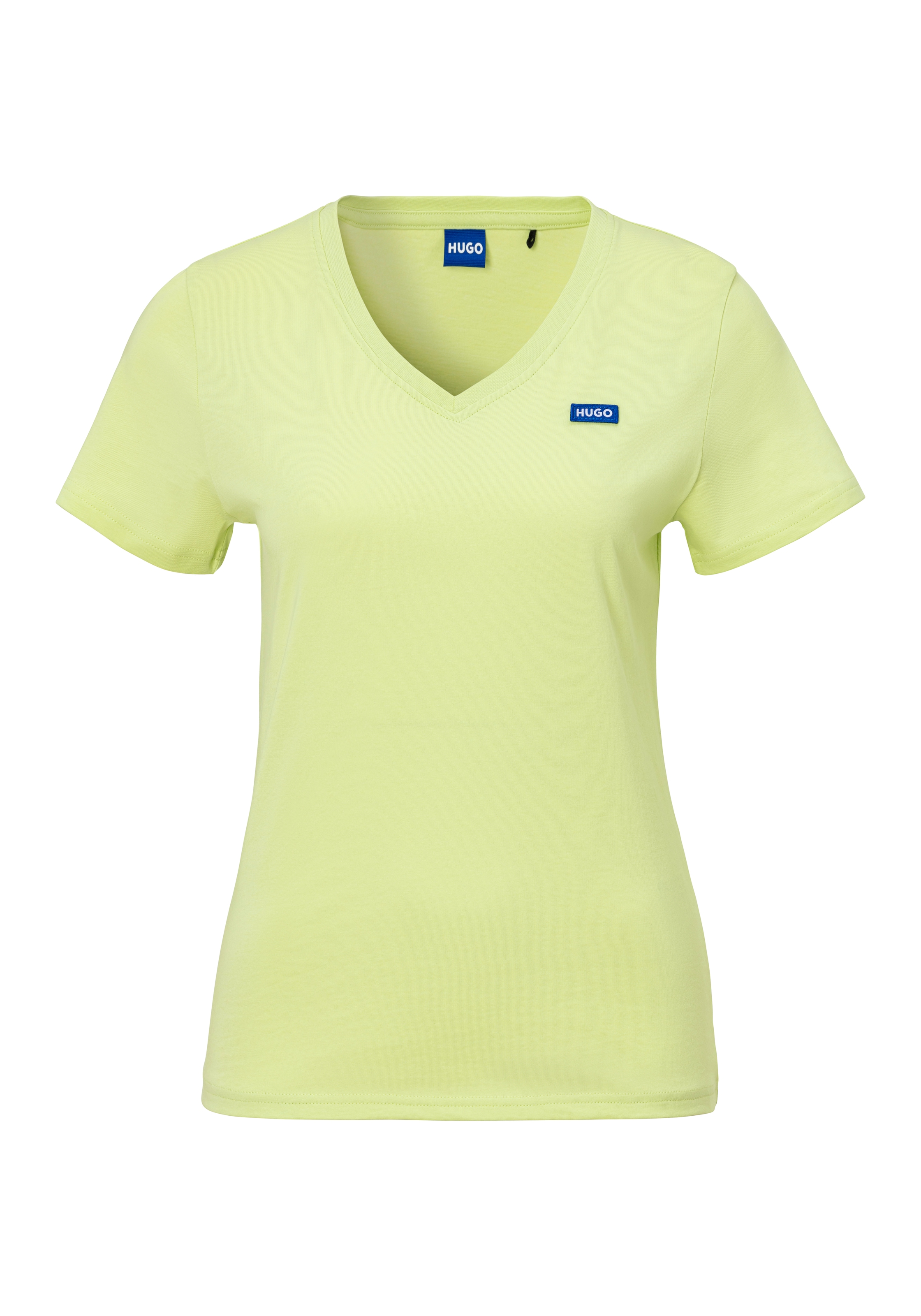 T-Shirt HUGO BLUE "Classic V_B", Damen, Gr. L, bright grün 329, Single Jersey, Obermaterial: 100% Baumwolle, unifarben, casual, regular fit, V-Ausschnitt, Kurzarm eingesetzt normaler Saum, Shirts, mit Logo