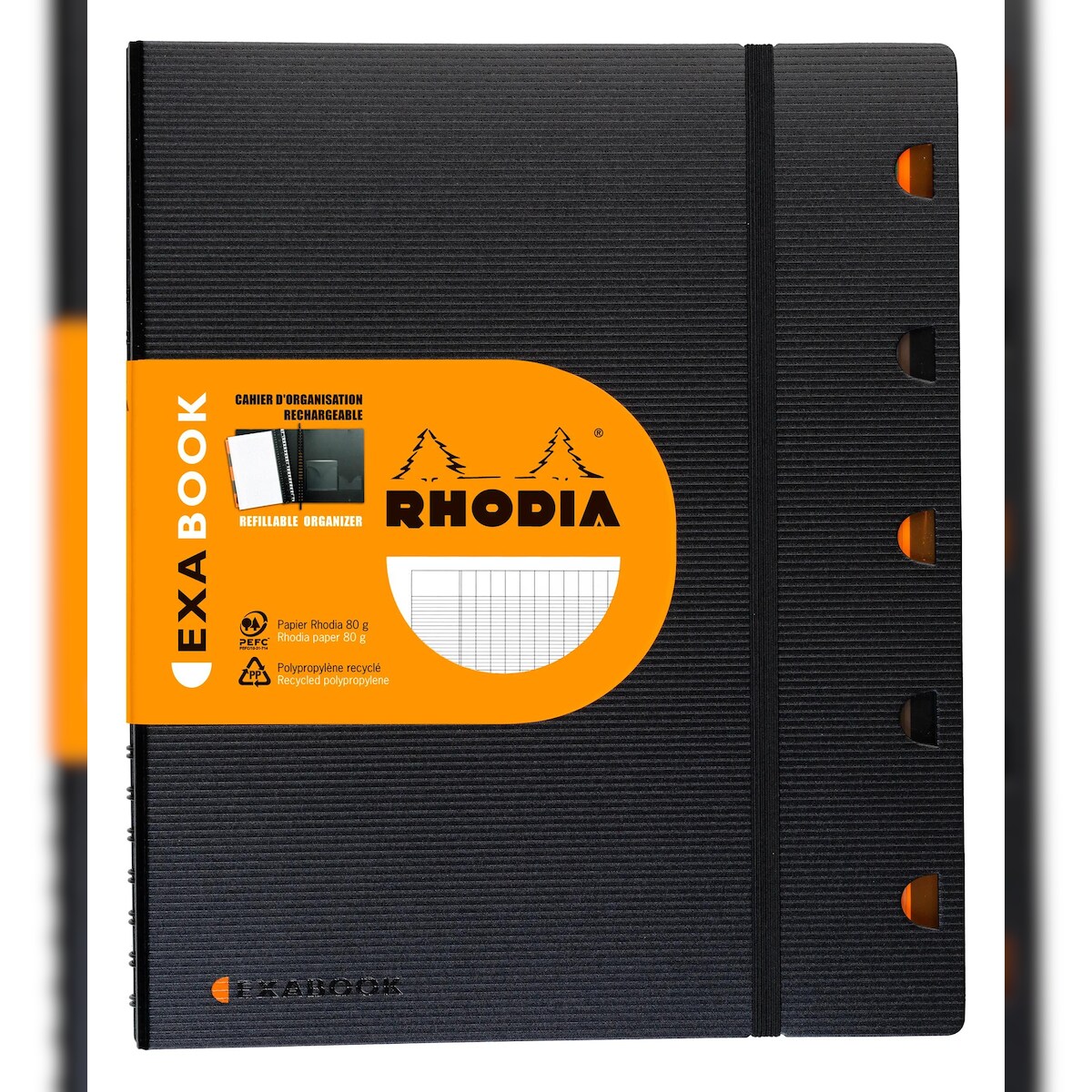 Rhodia 6x Exabook A4+ Rhodiactive, Spiralbuch, 80 Blatt 90g mit Rand/Rahmen und Kopfleiste, Seyès französische Lineatur - Schwarz 132151C