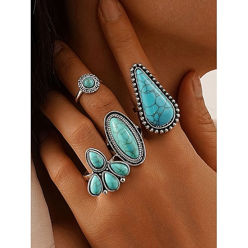 set di anelli turchesi da donna - set multi-pezzo di gioielli vintage in lega bohémien per le vacanze delle donne, le vacanze al mare e l'uso quotidiano