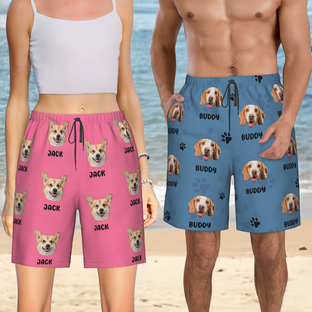 Gepersonaliseerde hond kat gezicht foto naam sneldrogende zwembroek strand shorts met mesh voering Bachelor Party vakantie cadeau voor vrouwen mannen