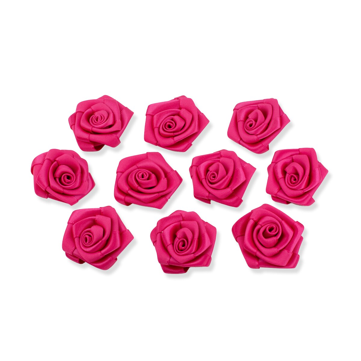 Creativery Satinrosen 3cm 10 Stück Stoffblumen zum Basteln Dekorieren Hochzeit Geschenkverpackung Blütendeko Tischdeko Handarbeit Stoffrosen Deko Blume Fuchsia