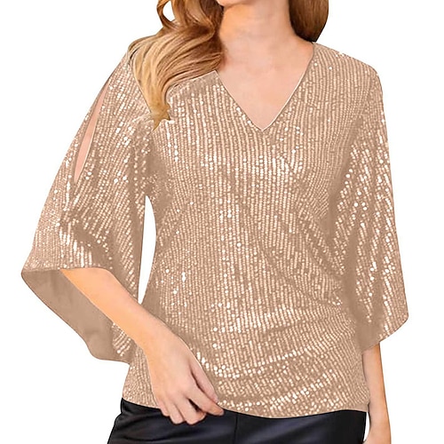 Per donna Blusa Top con paillettes Semplice Elegante Western Manica 3/4 Scollo a V Top Regolari Ferie Uscire Paillettes Patchwork Nero Bianco Rosso Blu Reale Verde Estate Primavera Autunno