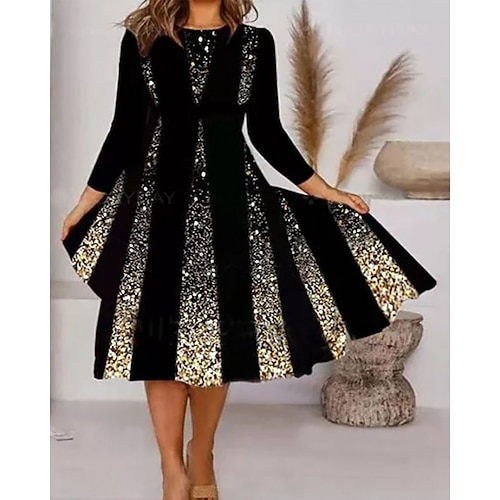 Per donna Abito Midi Abito Stampato Moda Moderno Quotidiano Ufficio Ferie Vestibilità regolare Grafico Manica Lunga Girocollo Rosa cipria Bianco Oro Primavera Autunno Inverno
