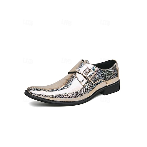 scarpe da uomo con doppia fibbia in pelle verniciata verde con stampa serpente - calzature formali eleganti per riunioni e matrimoni all'avanguardia