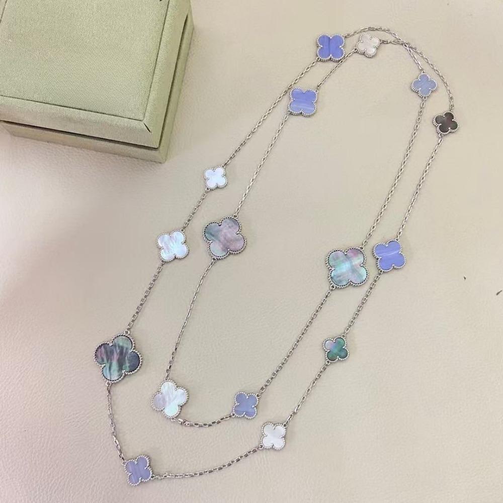 Chaîne de pull Trèfle à quatre feuilles haut de gamme Luxe léger Haute version 16 Fleurs Haut de gamme Double couche Super longue argenté