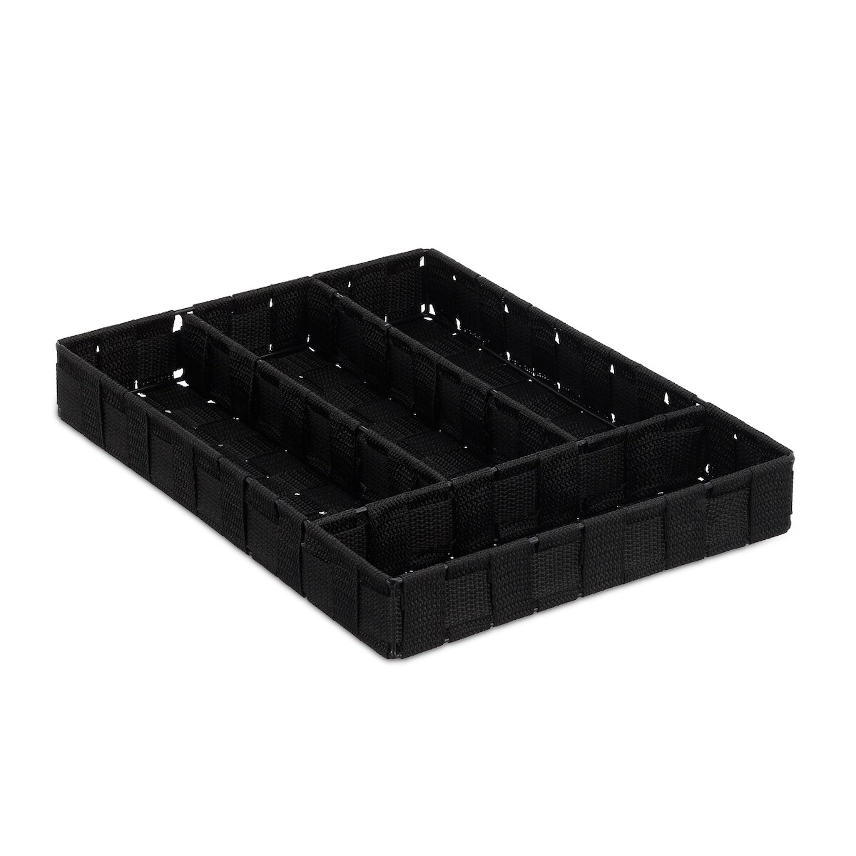 Relaxdays Besteckkasten, Schubladeneinsatz mit 4 Fächern, für Küchenbesteck, geflochten, HxBxT 4,5 x 26 x 36 cm, schwarz