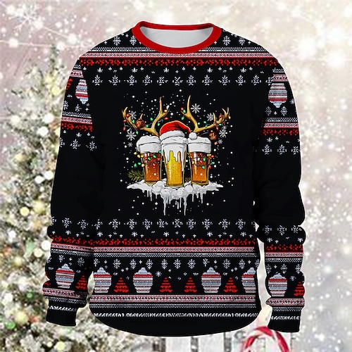 Babbo Natale Renna Birra Pullover Felpa divertente di Natale 3D Natale Divertente Per Da coppia Per uomo Per donna Per adulto Natale Carnevale Stampa 3D Feste Festival