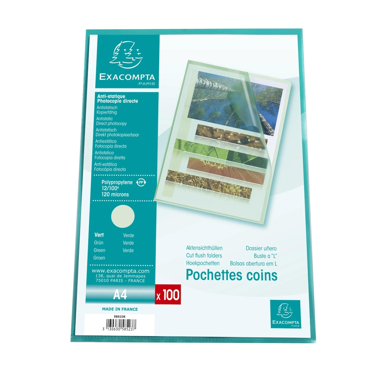 Exacompta 58523E 10x Packung mit 100 Aktenhüllen PP genarbt 1,2mm - A4 - Grün