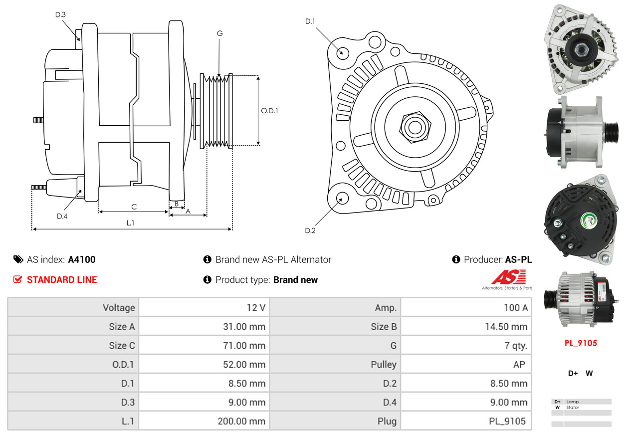 AS-PL Generator A4100 12V 100A für ROVER AMR4247 AMR3021 AMR2938