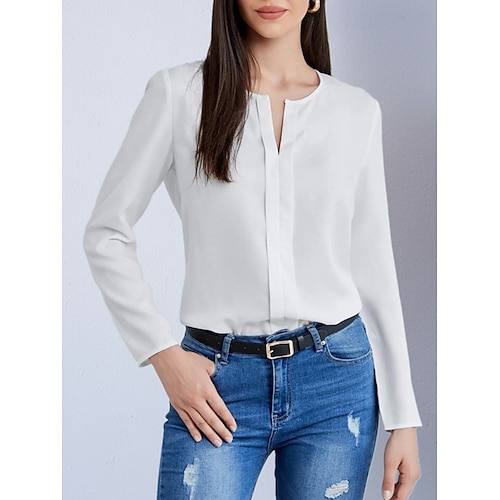 Per donna Camicia popover Camicia Estiva Camicia casual Blusa Tinta unica Elegante Essenziale Casual Manica Lunga Scollo a V Top lunghi Quotidiano Lavoro Ferie Blu Nero Bianco Rosa Rosso Estate