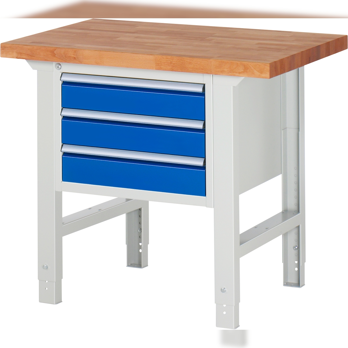 PROREGAL Werkbank Serie 7000 - Modell 7127 | HxBxT 79-114x100x70cm | 3x Schublade | Schubladenmaße 3x120mm | Lichtgrau | Arbeitstisch Werktisch