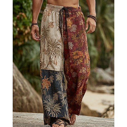 Per uomo Pantaloni Pantaloni casual Coulisse Tasca Elastico in vita Blocco di colori Fiori Comodità Quotidiano Uscire Vintage Casual Rosso Micro-elastico