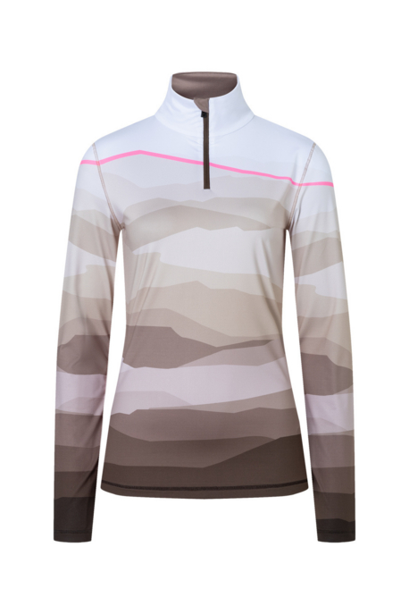 Mons Royale Women's Cascade Merino Base Layer 1/4 Zip Long Sleeve Aoraki Lily Toffee L