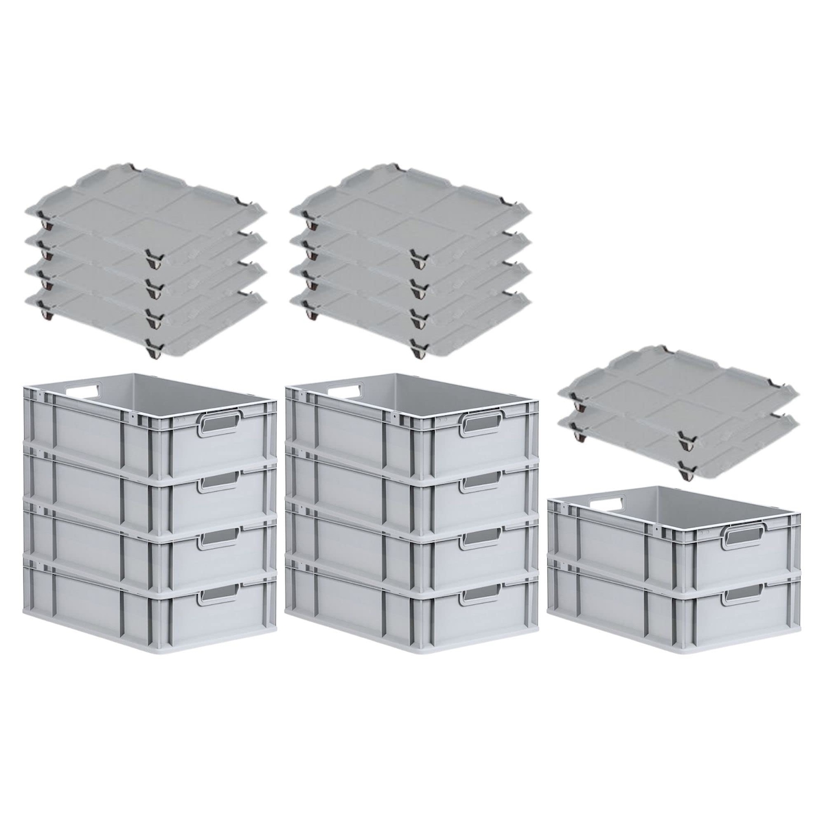 PROREGAL SparSet 10x Eurobox NextGen Economy mit Auflagedeckel & 4x Verschlüsse Schwarz, Griffe offen, HxBxT 17x40x60cm, 34L, Eurobehälter, Box
