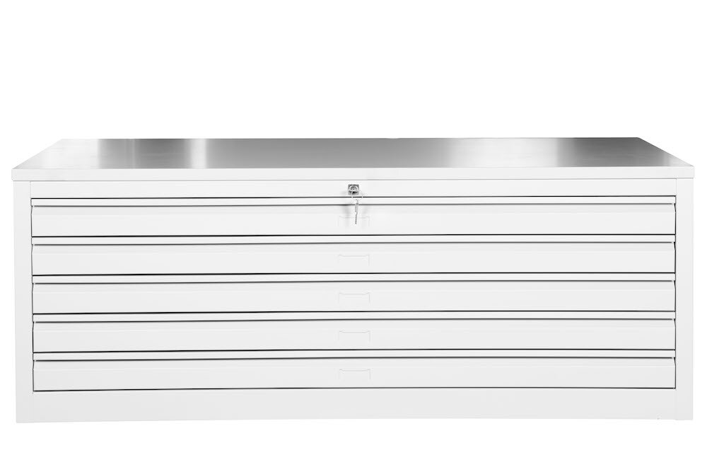 PROREGAL Flachablagenschrank Chinchilla | 5 Schubladen | Schwanenhalsgriff | HxBxT 53x140x95 cm | Holzabdeckplatte | Grau