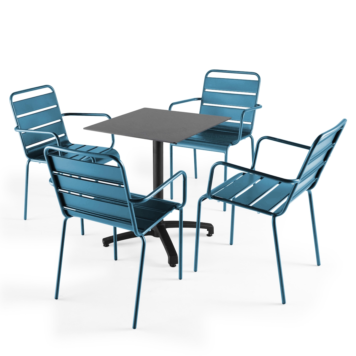 Oviala Business Set Terrassentisch aus grauem Laminat und 4 pacific-blauen Sesseln
