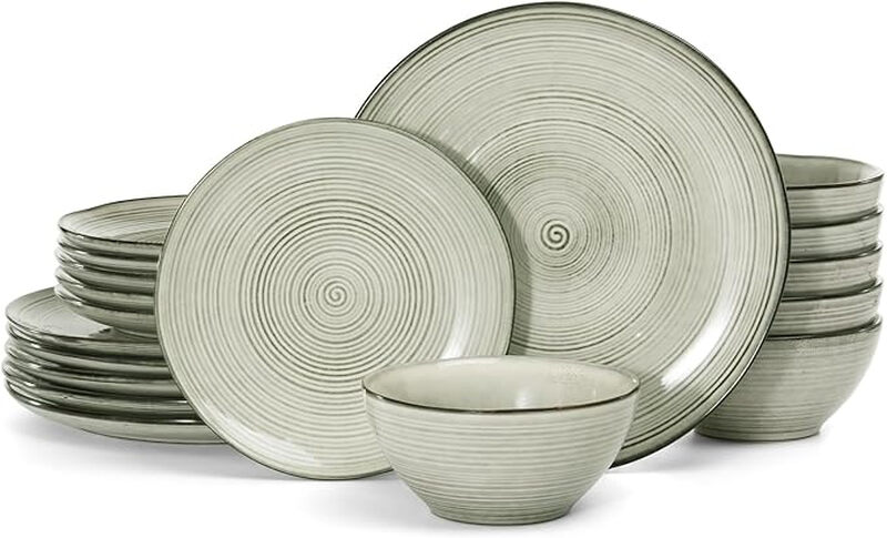 Richmount Tempus 18-teiliges Castle-Wall-Geschirrset für 6 Personen, Steingraues Reaktivglas, Für den täglichen Gebrauch und zum Servieren