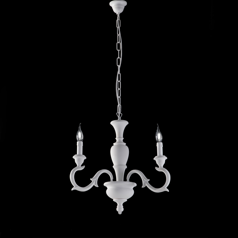 Bonetti Illumina Fiorenza - Schäbiger weißer Holzkronleuchter 3 Lichter 110 - Ø43 - BL172-3-BCO