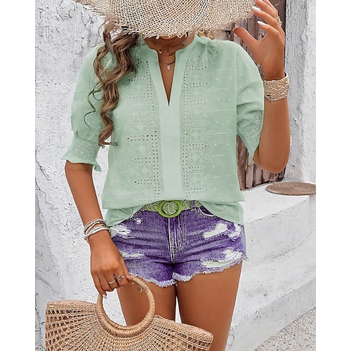 Per donna Blusa Semplice Elegante Casual Mezza Manica Scollo a V Top Regolari Quotidiano Ferie Uscire Traforato Blu Bianco Verde chiaro Rosa Estate Primavera Autunno