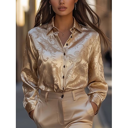 Per donna Camicia Floreale Grafico Geometrico Vintage Elegante Moderno Manica Lunga Colletto a Camicia Top Regolari Quotidiano Ferie Nero Vino Oro Autunno Inverno