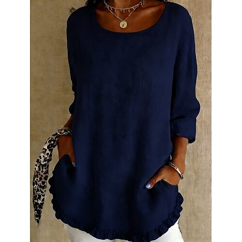 Per donna Camicia Blusa Camicia con volant Volant Semplice Elegante Classico Moderno Manica Lunga Girocollo Top Regolari Quotidiano Ferie Uscire Nero Bianco Giallo Rosa Verde militare Estate Primavera