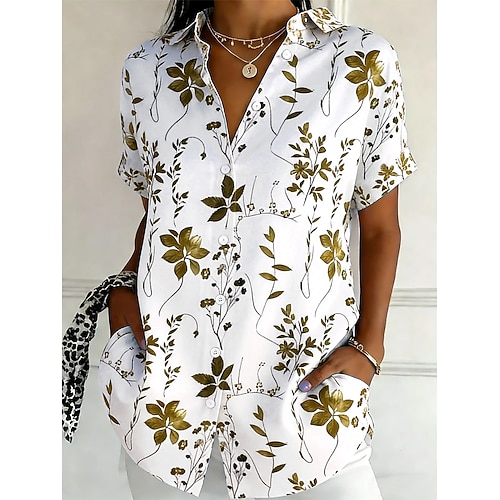 Per donna Camicia Stampato Floreale Elegante Moderno Manica Corta Colletto a Camicia Top Regolari Quotidiano Ferie Blu Nero Bianco Rosa Estate