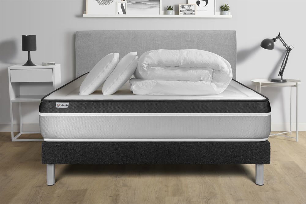 Vitalit Pack sommier kit matelas Mémoire de forme 200x200 Noir Complet