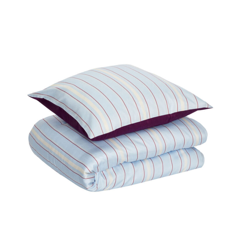 Hübsch Solace Parure de lit simple bleu clair - taie d'oreiller 60 x 63 cm + housse de couette 140 x 200 cm
