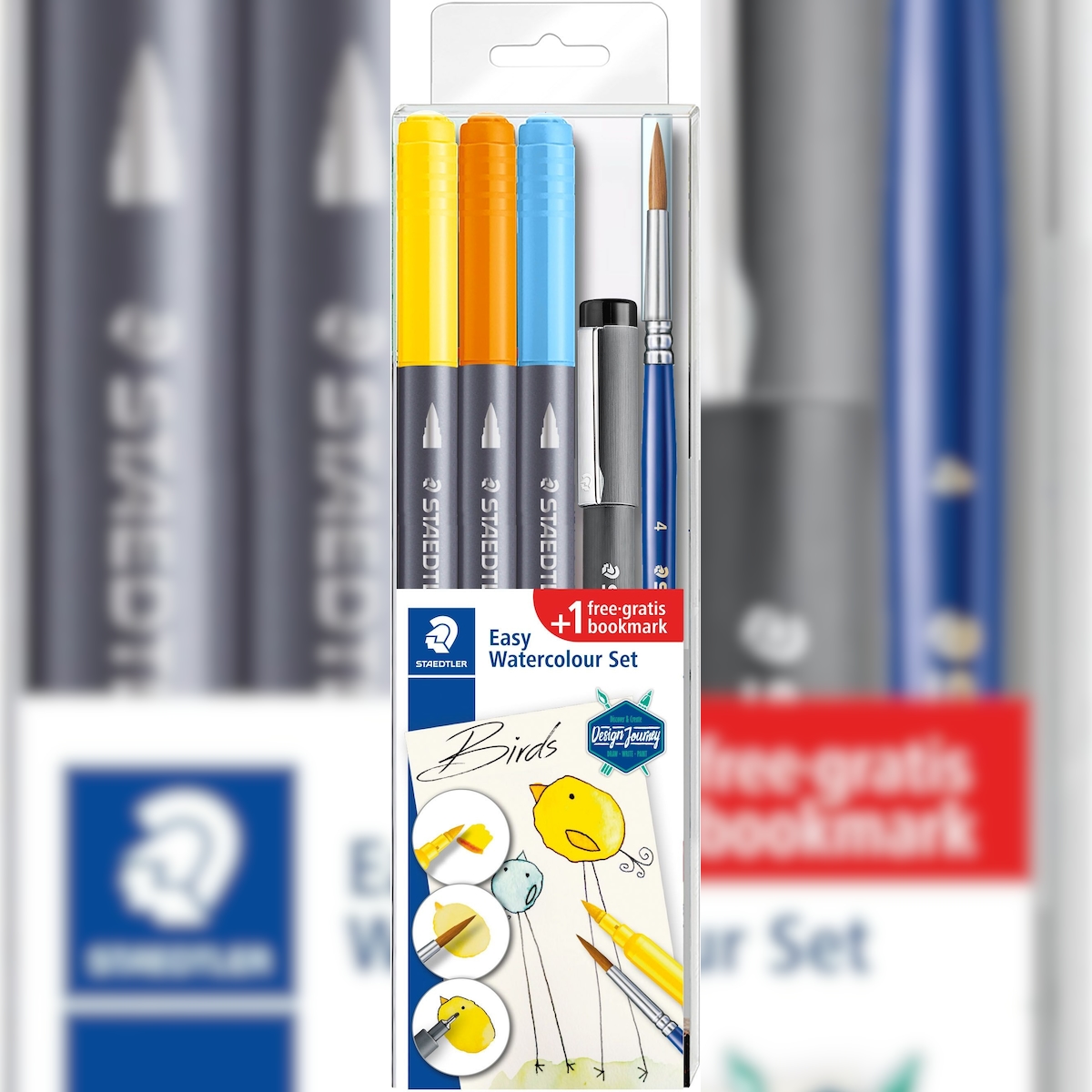 STAEDTLER Doppelfaseremaler Easy Watercolouring + Pigmentliner Set Birds