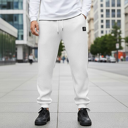 Per uomo Nido d'ape Pantaloni da tuta Joggers Pantaloni Pantaloni casual Coulisse Polsino elastico Tinta unica Comodità Lunghezza intera All'aperto Casuale Quotidiano Moda Stile Classico Nero Bianco
