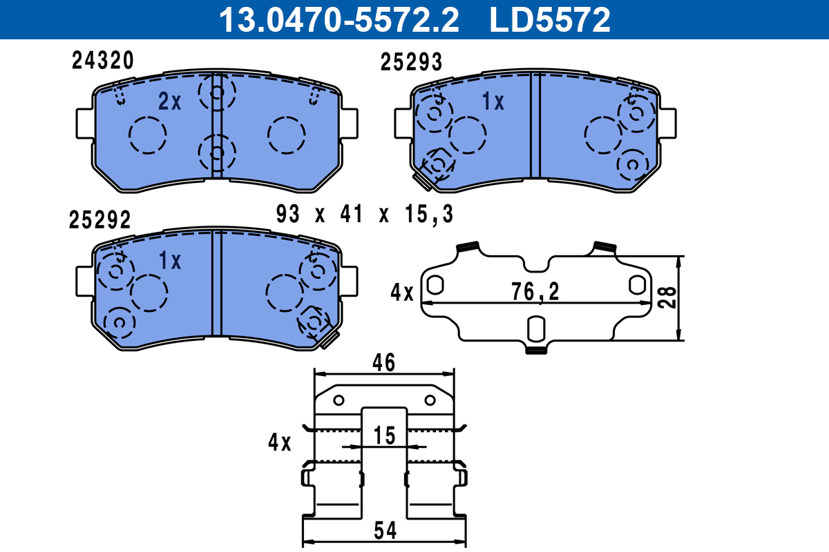 ATE Bremsbelagsatz, Scheibenbremse 13.0470-5572.2 hinten rechts links mit Zubehör für HYUNDAI KIA 58302-J9A00 58302-0ZA00 58302-1GA00