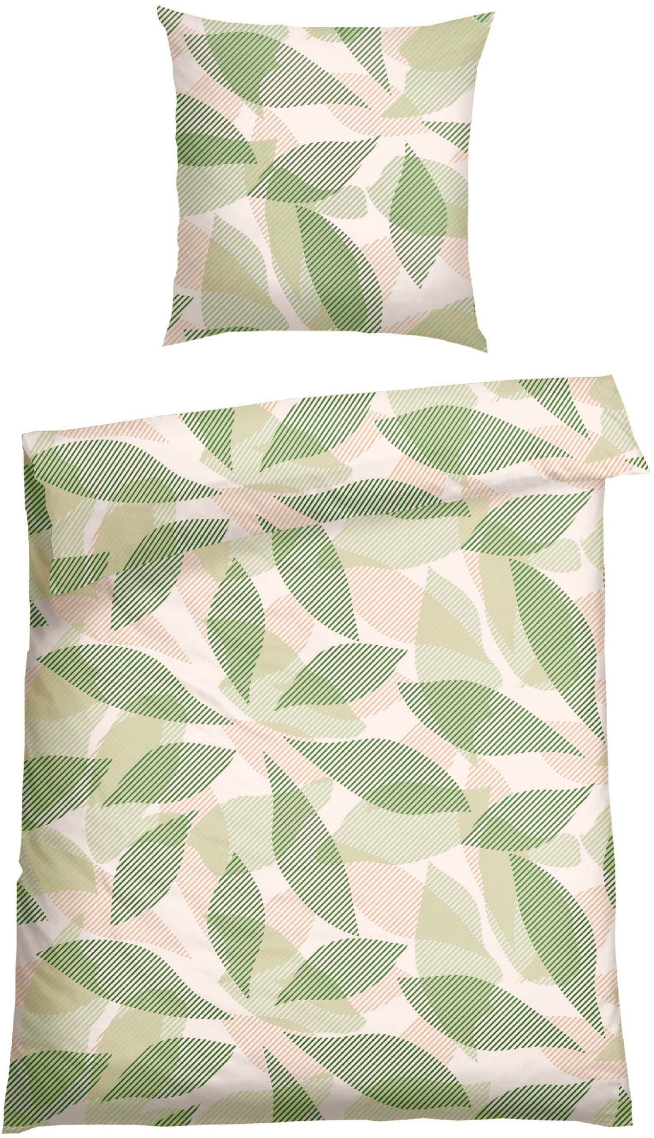 Bettwäsche SCHIESSER "Lea aus weicher Baumwolle mit einem aufwändigen Grafikdesign", grün, B/L: 135cm x 200cm, , Renforcé, B/L: 80cm x 80cm, Renforcu00e9, Obermaterial: 100% Baumwolle, Bettwäsche, MADE IN GREEN by OEKO-TEX