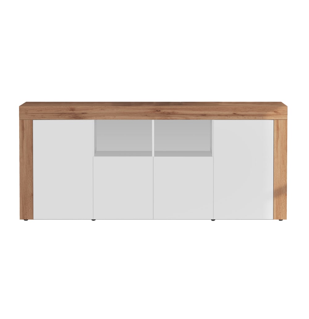 Credenza a 4 Ante Effetto Legno Bianco Lucido e Rovere 200x40x85 cm