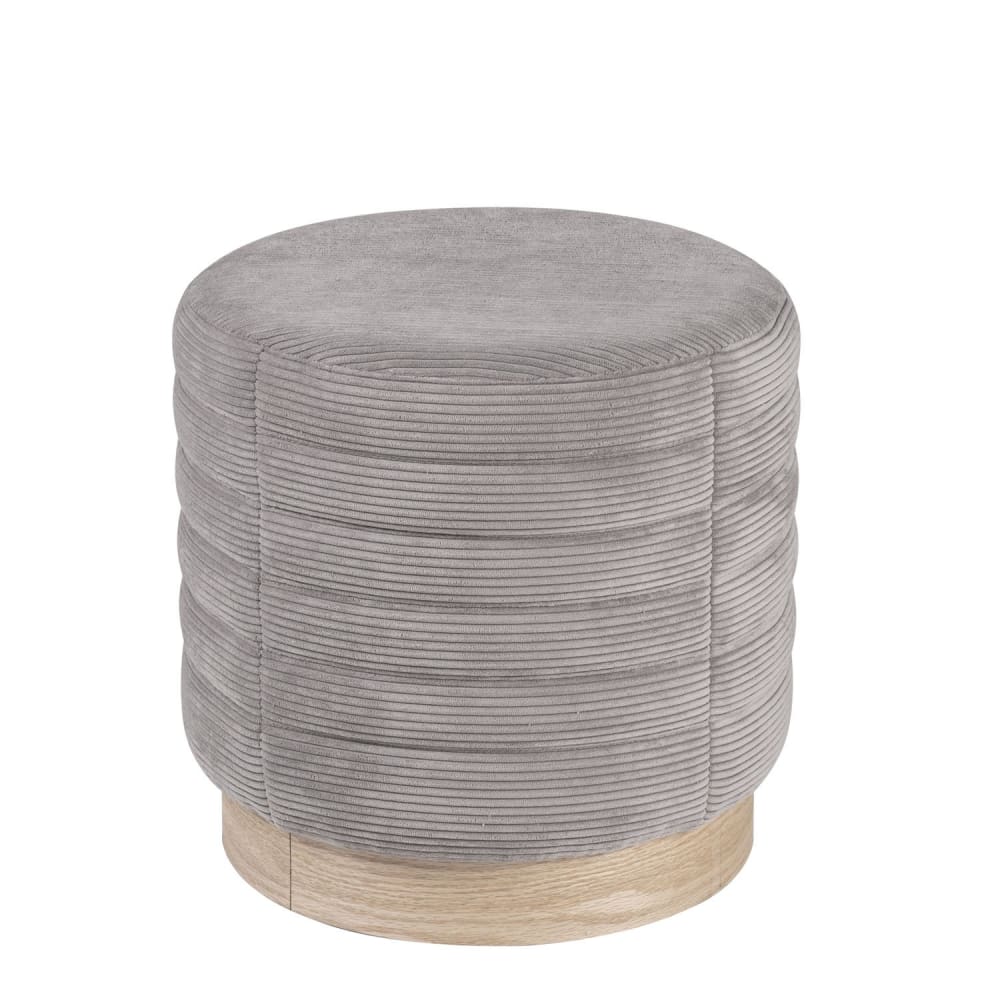 Pouf velluto a righe base legno naturale impiallacciato grigio