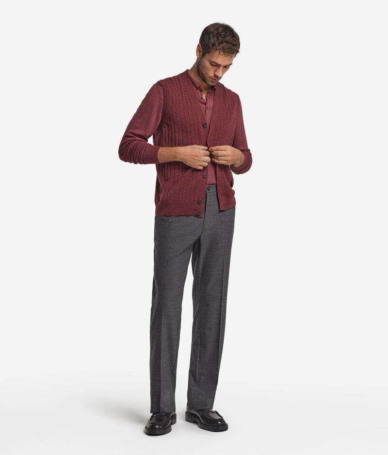 Falconeri Gilet a coste in Cashmere Ultrasoft Uomo Marsala Melange Taglia 48