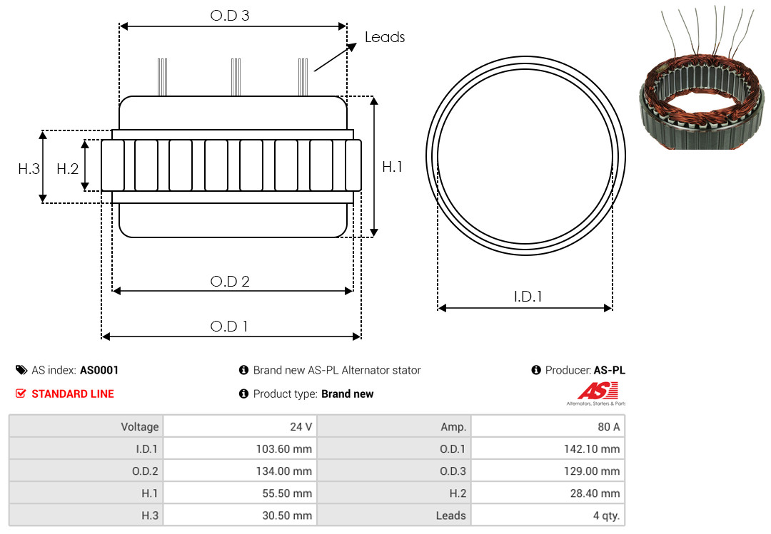 AS-PL Stator, Generator AS0001 Universal 24V 80A für DAF IVECO 93160281 1936221