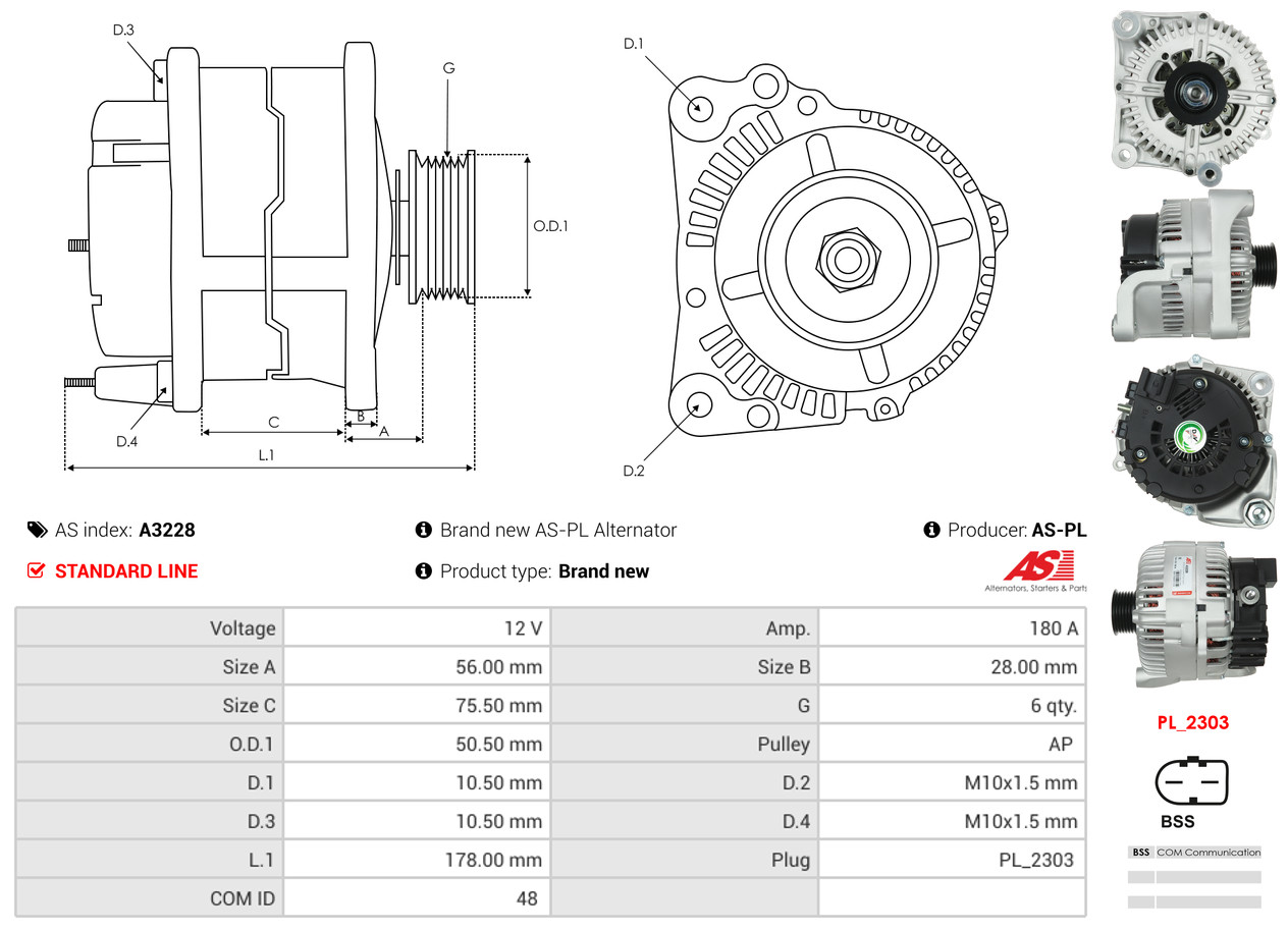 AS-PL Generator A3228 12V 180A für BMW 12317540990 7540992 12317542934