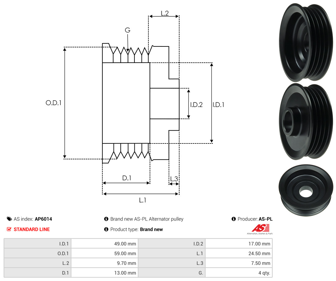 CASCO Riemenscheibe, Generator CCP90120AS Universal 55,67mm für VOLVO IKA 9472909 3.3539.1 30782701