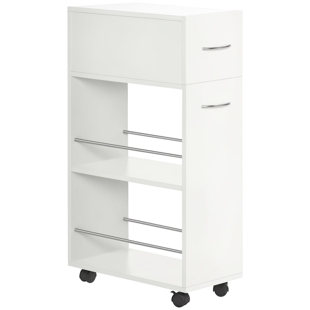 SoBuy Caisson de bureau à roulettes 2 tiroirs et 1 porte effet bois blanc Blanc 75x76x40cm