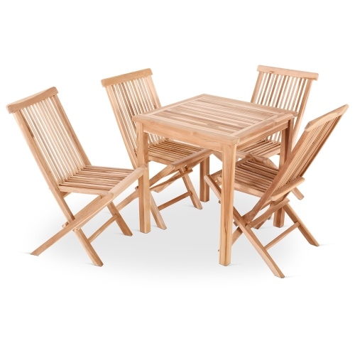 Sitzgruppe - Teak-Holz Set aus 4 Klappstühle, 1 Tisch 80 x 80 cm, Langlebig, massiv & robust für Outdoor, Raburg Marelia XL