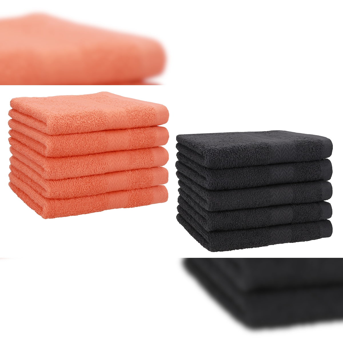 Betz 10 Stück Gästehandtücher PREMIUM 100% Baumwolle Gästetuch Set 30x50 cm blutorange und graphit