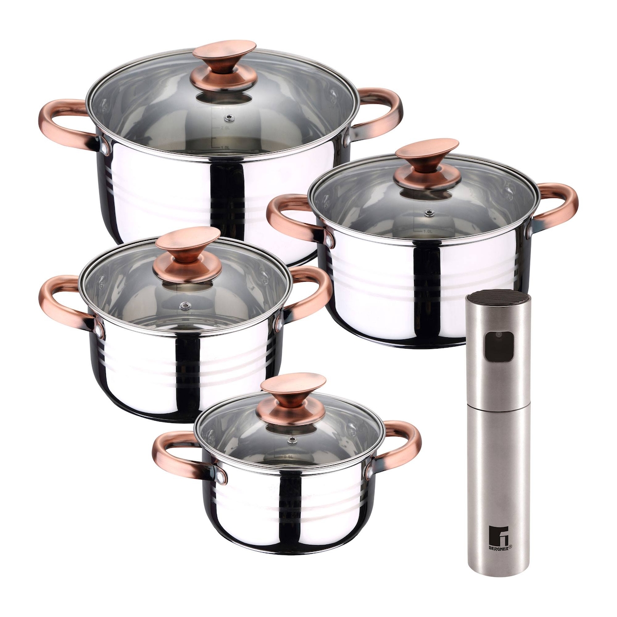BERGNER - NONA 8-teiliges Kochgeschirr-Set (16/18/20/24cm), geeignet für Induktionskochfelder, mit Öl-/Essigsprüher (Ø4x17,5cm), aus Edelstahl