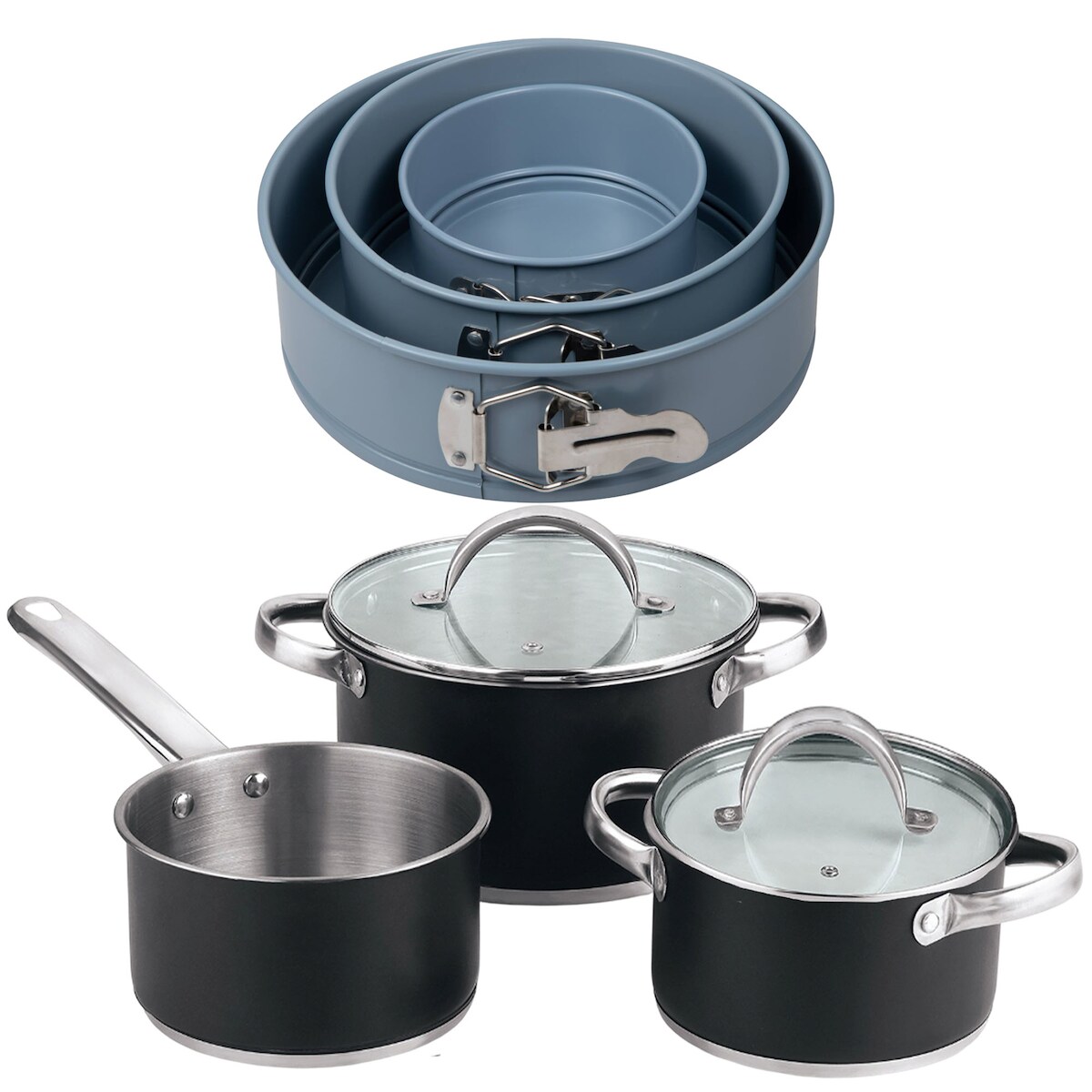 BERGNER - 5-teiliges Edelstahl-Kochgeschirrset (16/18/20cm), geeignet für Induktionskochfelder, mit einem Set aus 3 runden Ofenformen (Ø12/Ø18/Ø22cm)