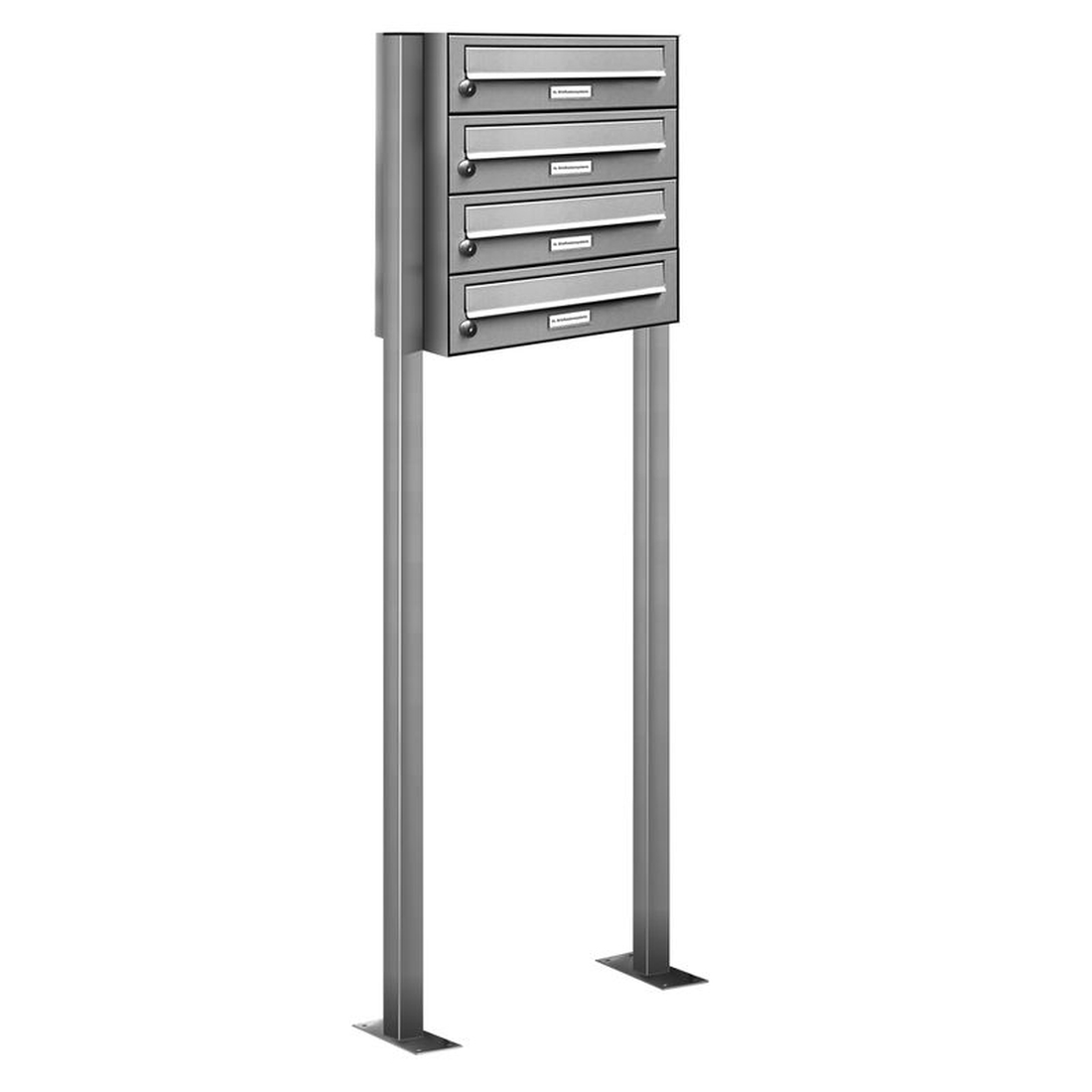 AL Briefkastensysteme 4 Fächer Premium Edelstahl Stand Briefkasten Anlage für Post A4 modern, robust, wetterfest, Artikelnummer: 132V4S1