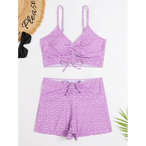 Costume da bagno da donna Bikini 2 pezzi Cheeky Moda Vacanza Grafica floreale V collo Senza maniche