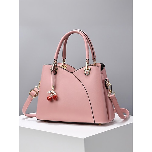 Borsa da donna in similpelle con ciondolo a forma di ciliegia, manico superiore e tracolla, elegante borsa tote multicolore per donna, perfetta per feste di Natale, regali per le feste e outfit quotidiani